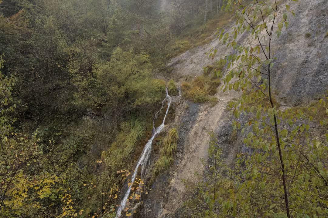 A waterfall under the Tošč hill in the Polhov Gradec Hills of Slovenia.